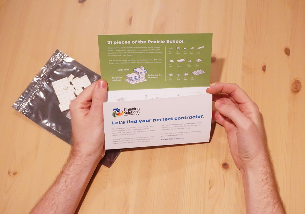Mailers are fleeting marketing pieces — having less than five seconds to grab some attention before they end up in the bin. To create true staying power, I designed a mail piece with FSN that tickled architect's inner child through their love of a custom LEGO mini-kit.